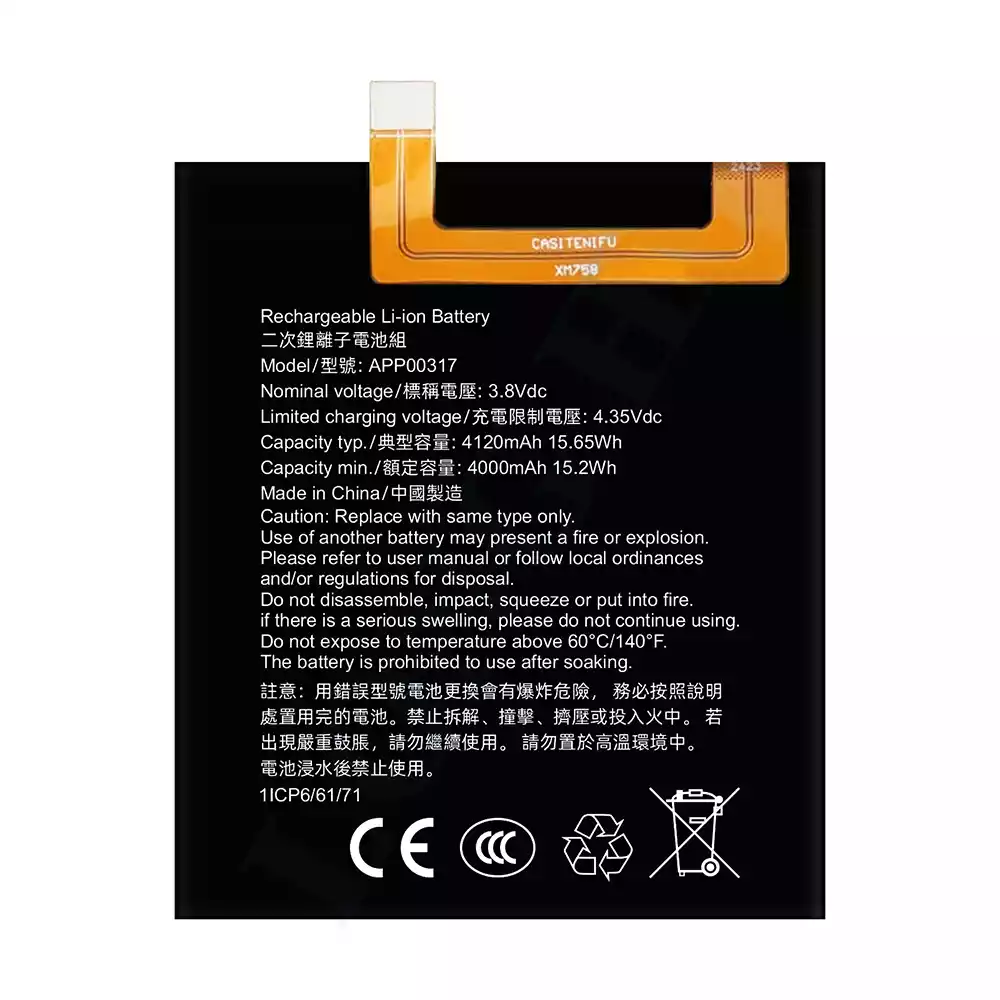Battery model APP00317 fits for CAT S62 Pro