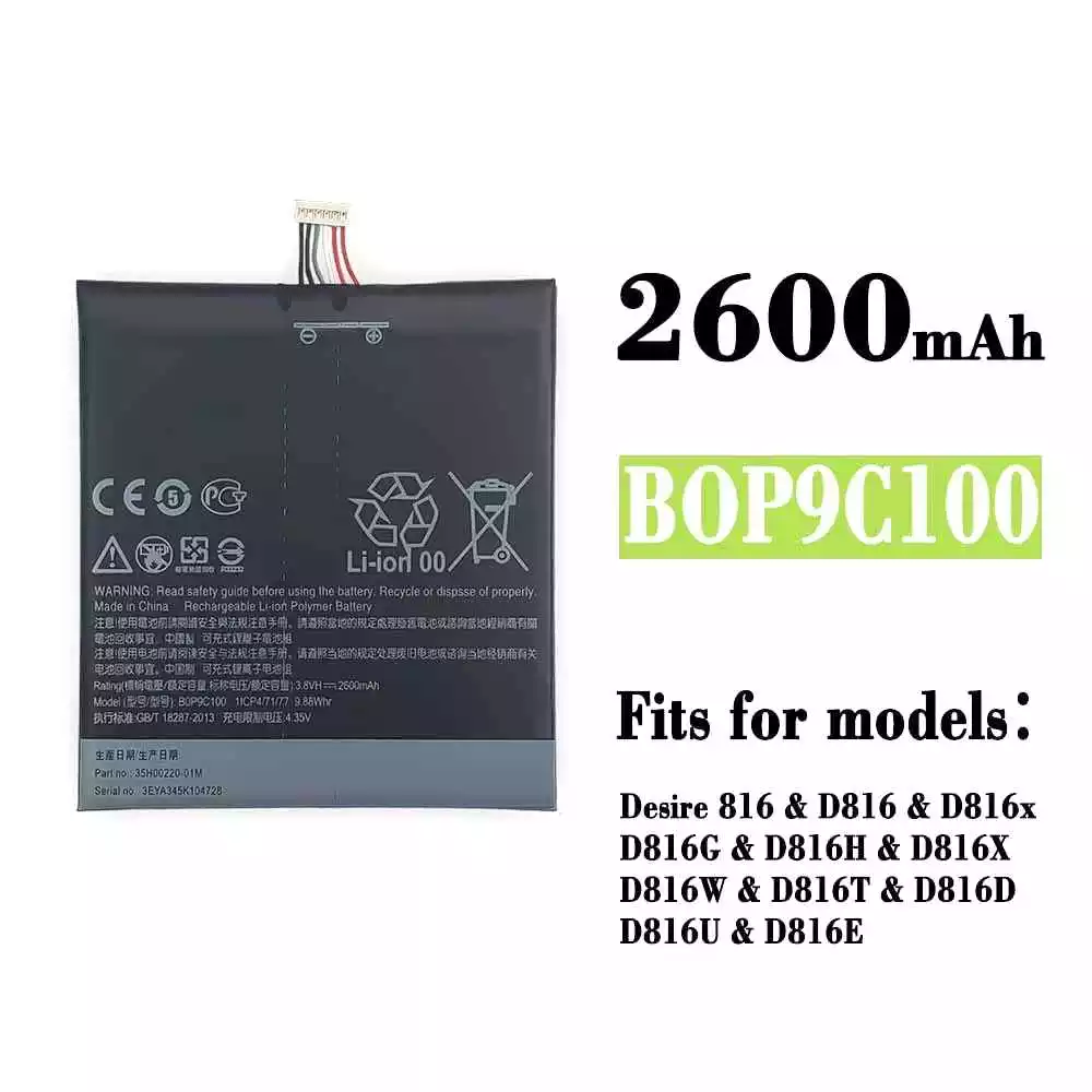 Battery model B0P9C100 BOP9C100 fits for HTC Desire 816 / D816 / D816x / D816G / D816H / D816X / D816W / D816T / D816D / D816U / D816E