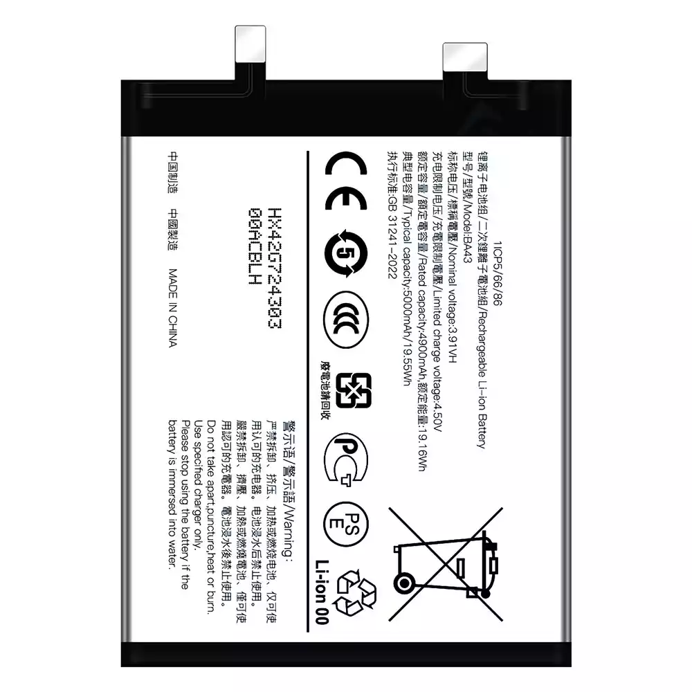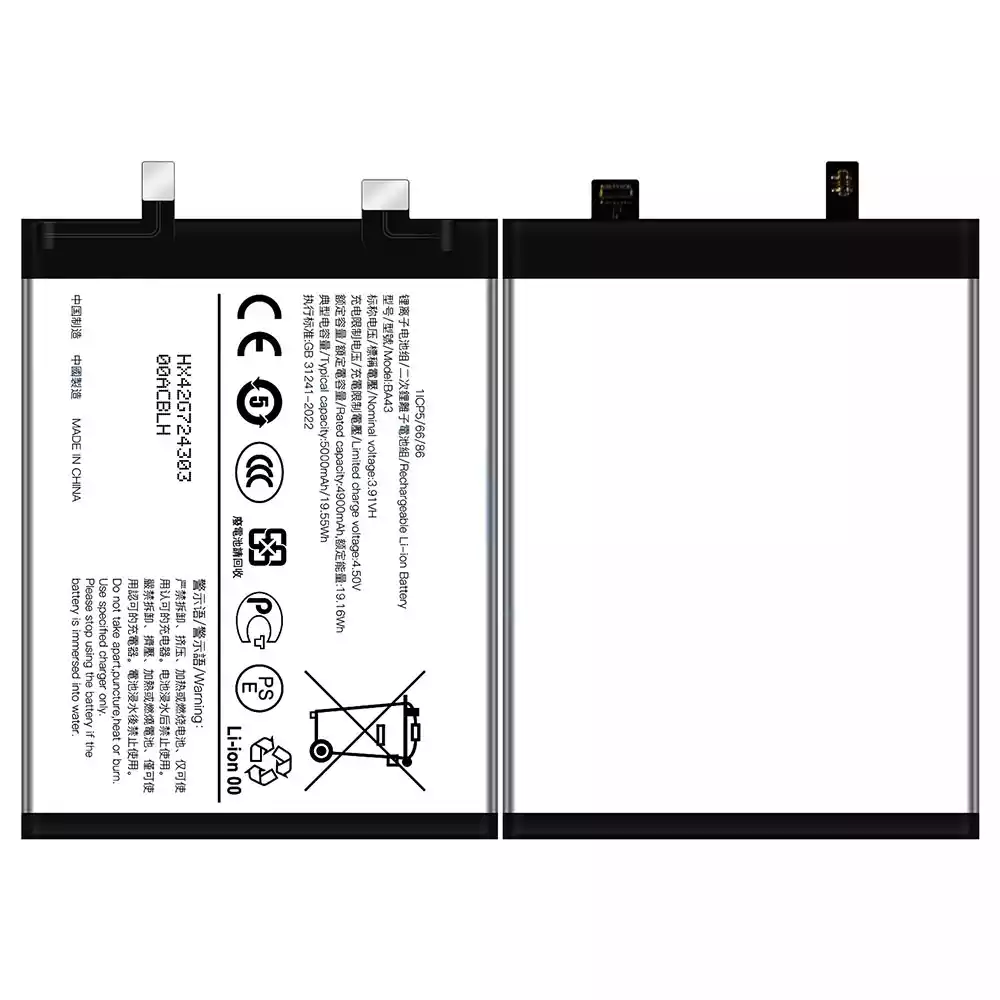 Battery model BA43 fits for VIVO Y100 4G International Edition