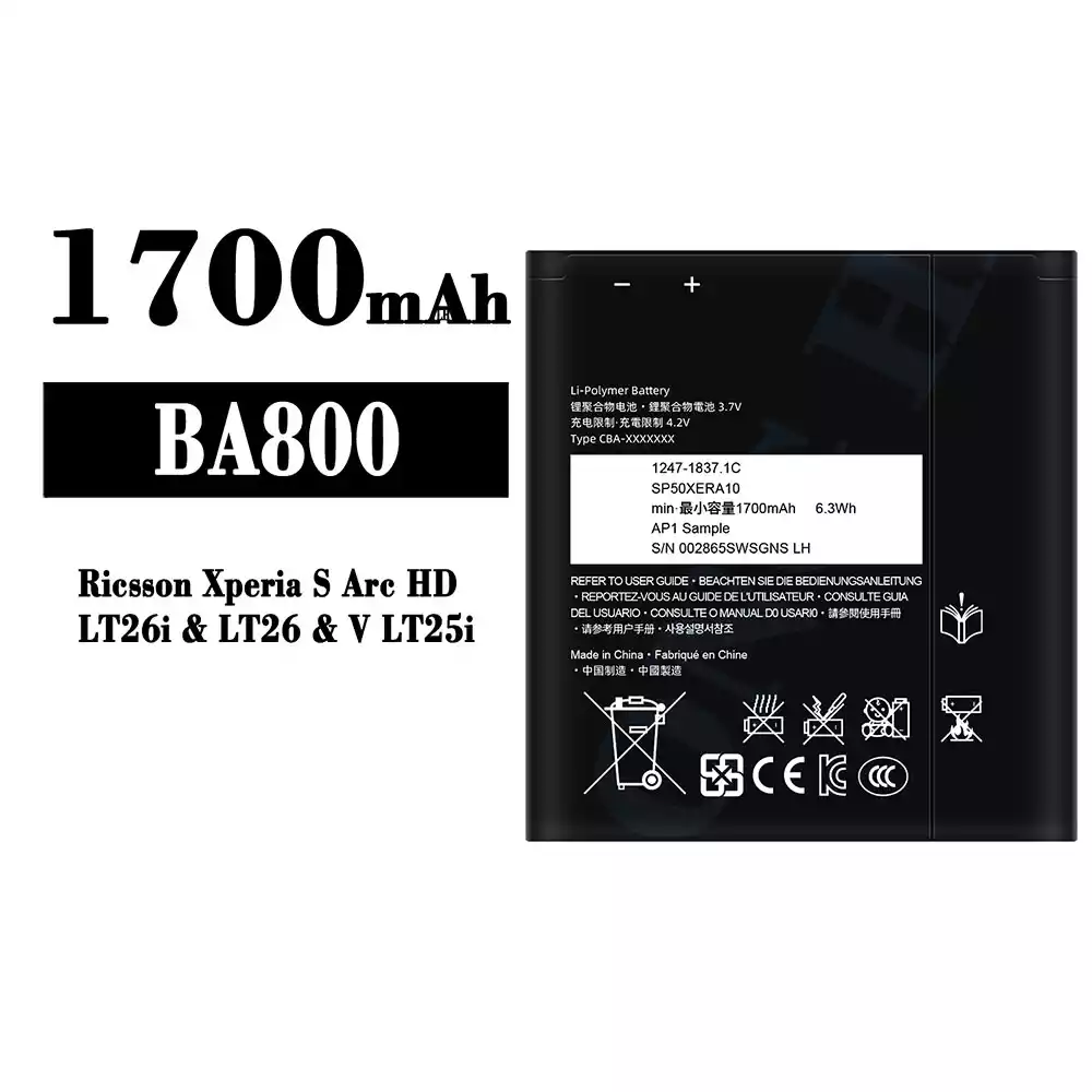 Battery model BA800 fits for Sony Ricsson Xperia S Arc HD / LT26i / V LT25i / LT26
