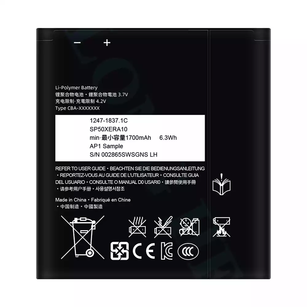 Capacity: 1700mAh (6.3Wh)