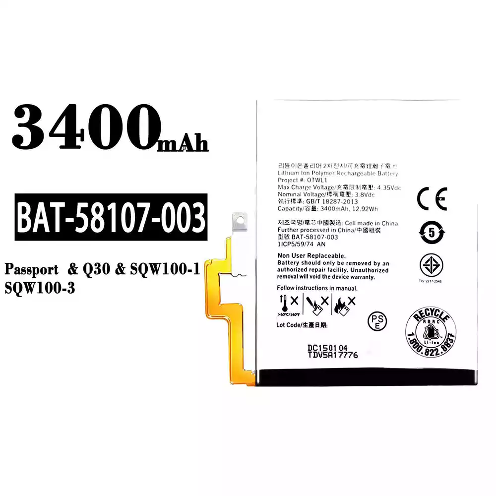 Battery model BAT-58107-003 fits for BlackBerry Passport/Q30/SQW100-1/SQW100-3