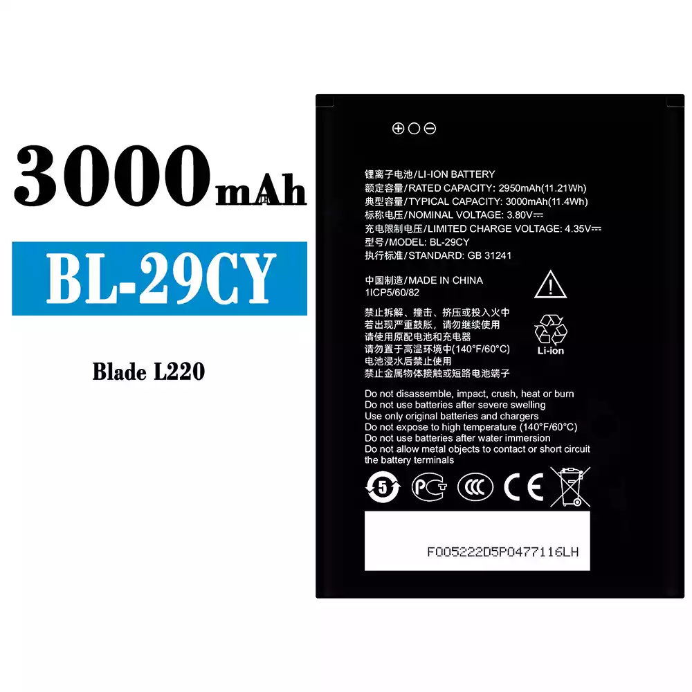 Battery model BL-29CY fits for ZTE Blade L220
