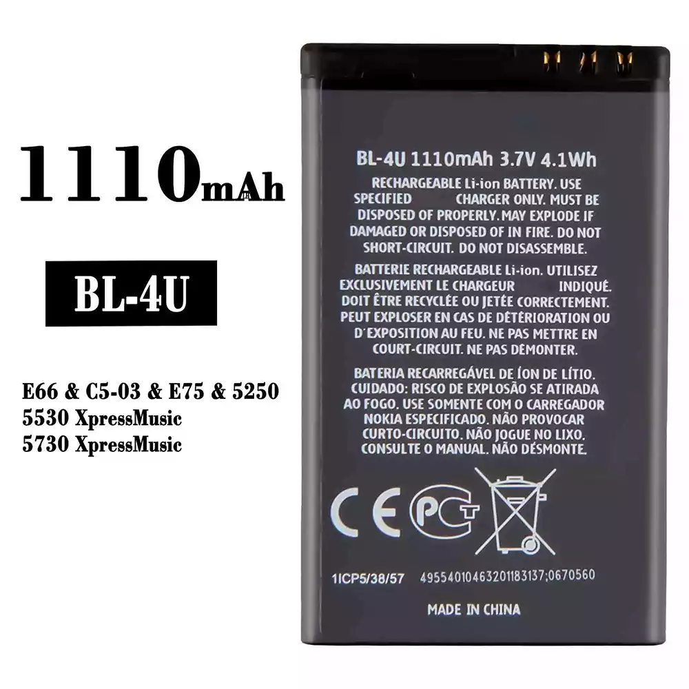 Battery model BL-4U fits for Nokia E66 / C5-03 / E75 / 5250 / 5530 XpressMusic / 5730 XpressMusic