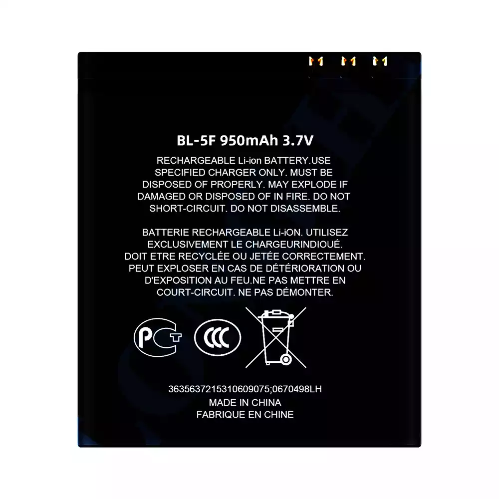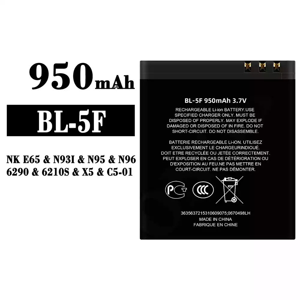 Battery model BL-5F fits for Nokia NK E65 / N93I / N95 / N96 / 6290 / 6210S / X5 / C5-01