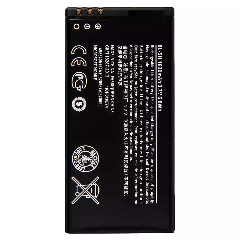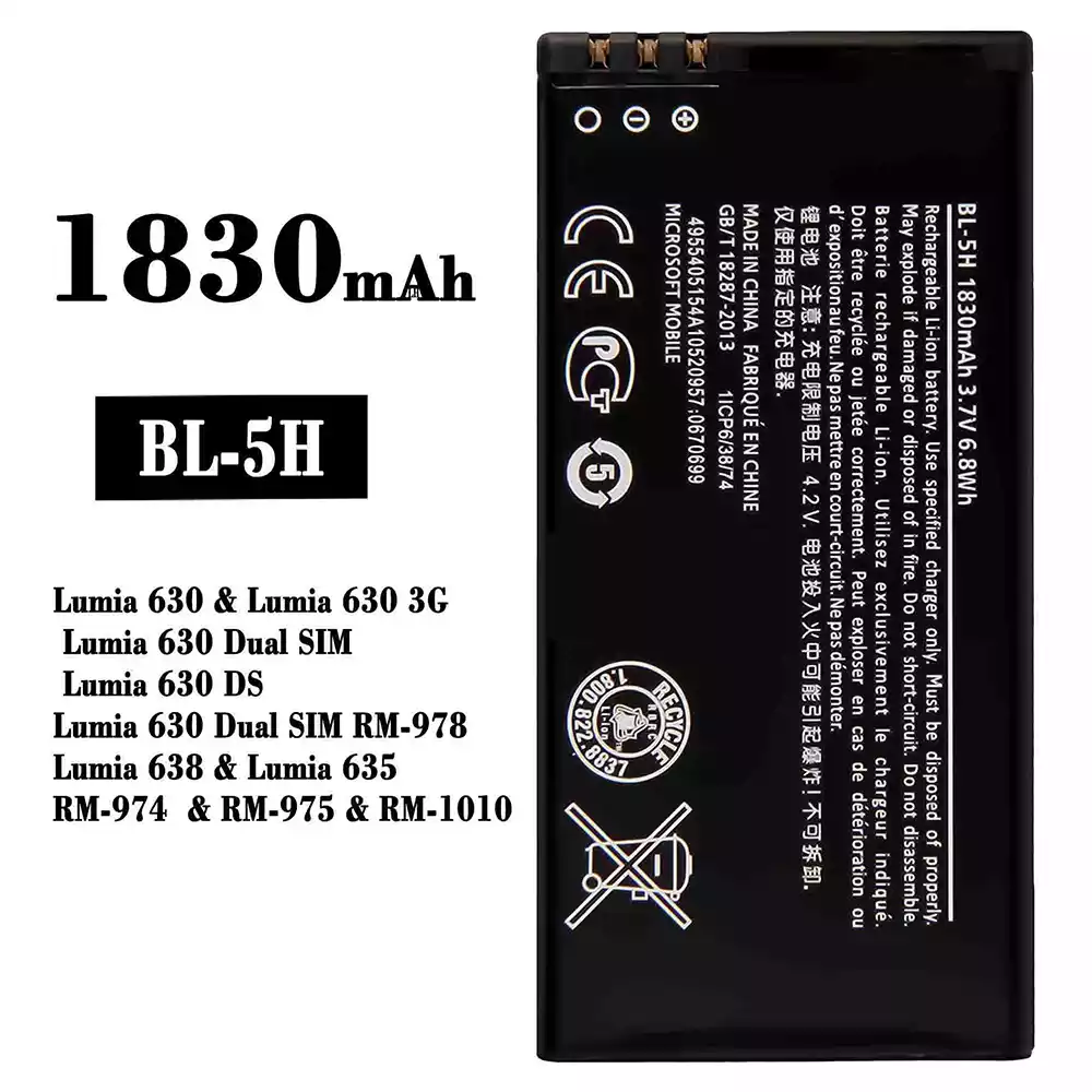 Battery model BL-5H fits for Nokia Lumia 630 / Lumia 630 3G / Lumia 630 Dual SIM / Lumia 630 DS / Lumia 630 Dual SIM RM-978 / Lumia 638 / Lumia 635 / RM-974 / RM-975 / RM-1010