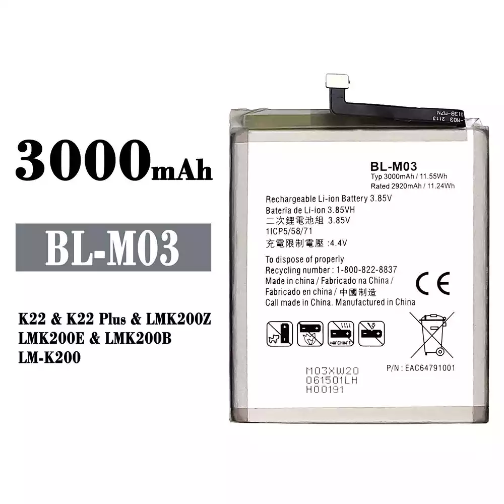 Battery model BL-M03 fits for LG K22 / K22 Plus / LMK200Z / LMK200E / LMK200B / LM-K200