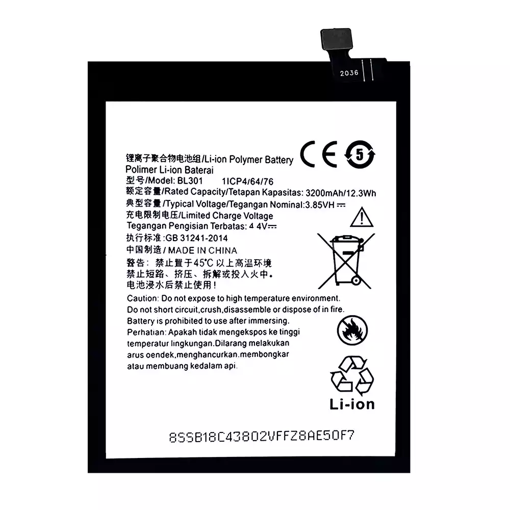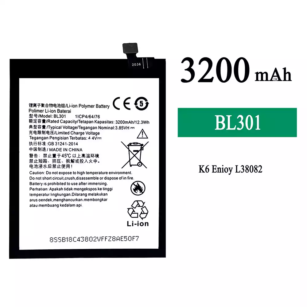 Battery model BL301 fits for Lenovo K6 Enjoy L38082