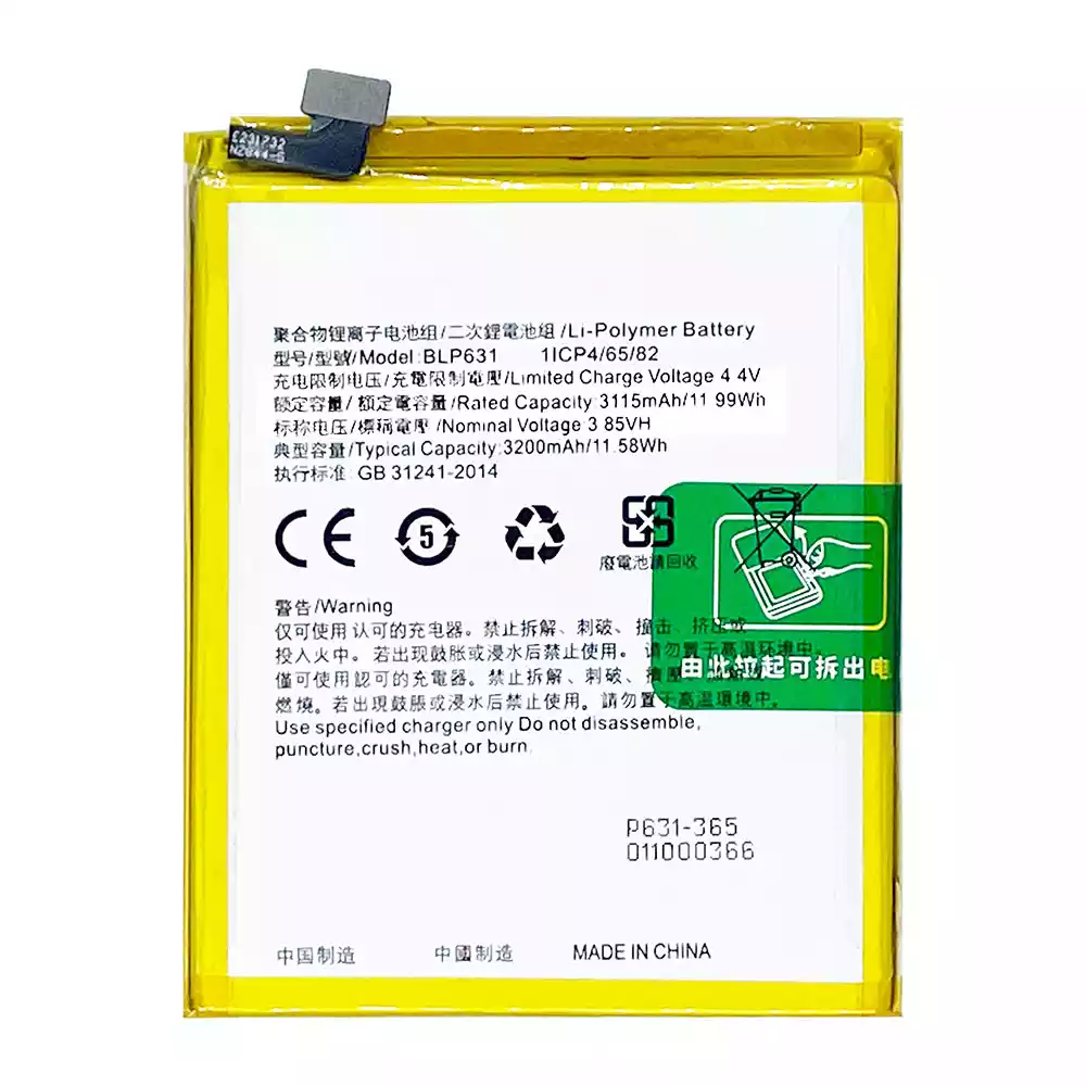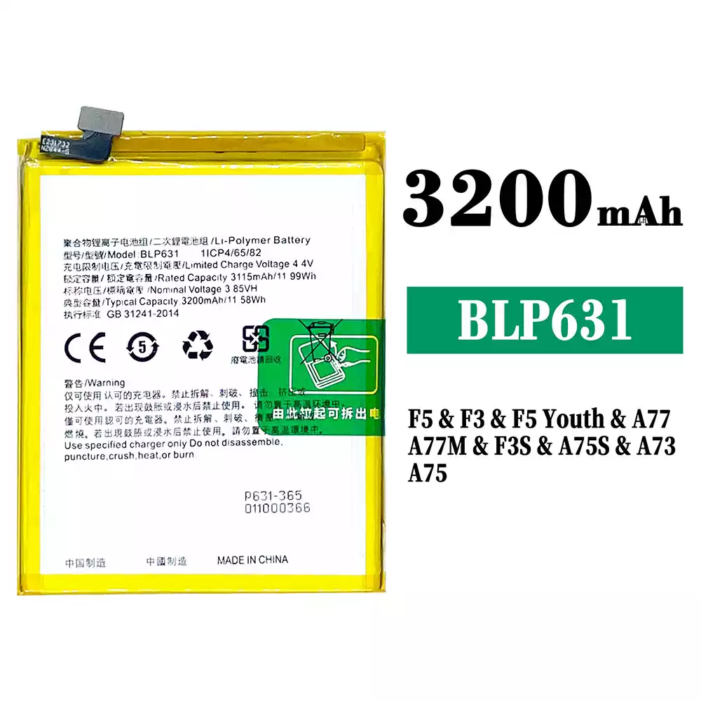 Battery model BLP631 fits for OPPO F5 / F5 Plus / CPH1723 / CPH1727 / CHP1723 / CHP1727 / F5 Youth / A73 /CPH1725 / F3 / CPH1609 / A77 / CPHl715 / A75