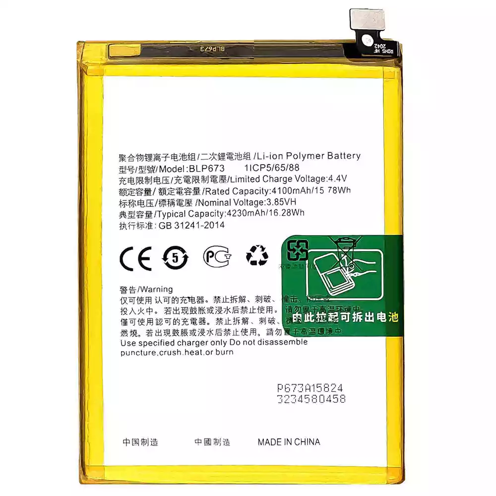 Battery model BLP673 fits for OPPO A5 / AX5 / A7 / AX7 / A5S / AX5S / CPH1909 / Realme C1 2018 / A1603 / Realme C1 2019 / RMX1811 / A12 / A12E / A12S / A12 2020 / A31 2020 / Realme 2 / RMX1805 / RMX1809