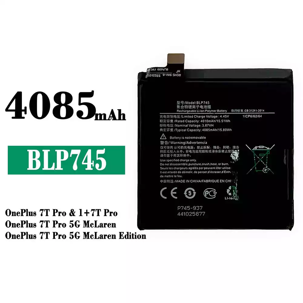 Battery model BLP745 fits for OPPO OnePlus 7T Pro / 1+7T Pro / OnePlus 7T Pro 5G McLaren / OnePlus 7T Pro 5G McLaren Edition