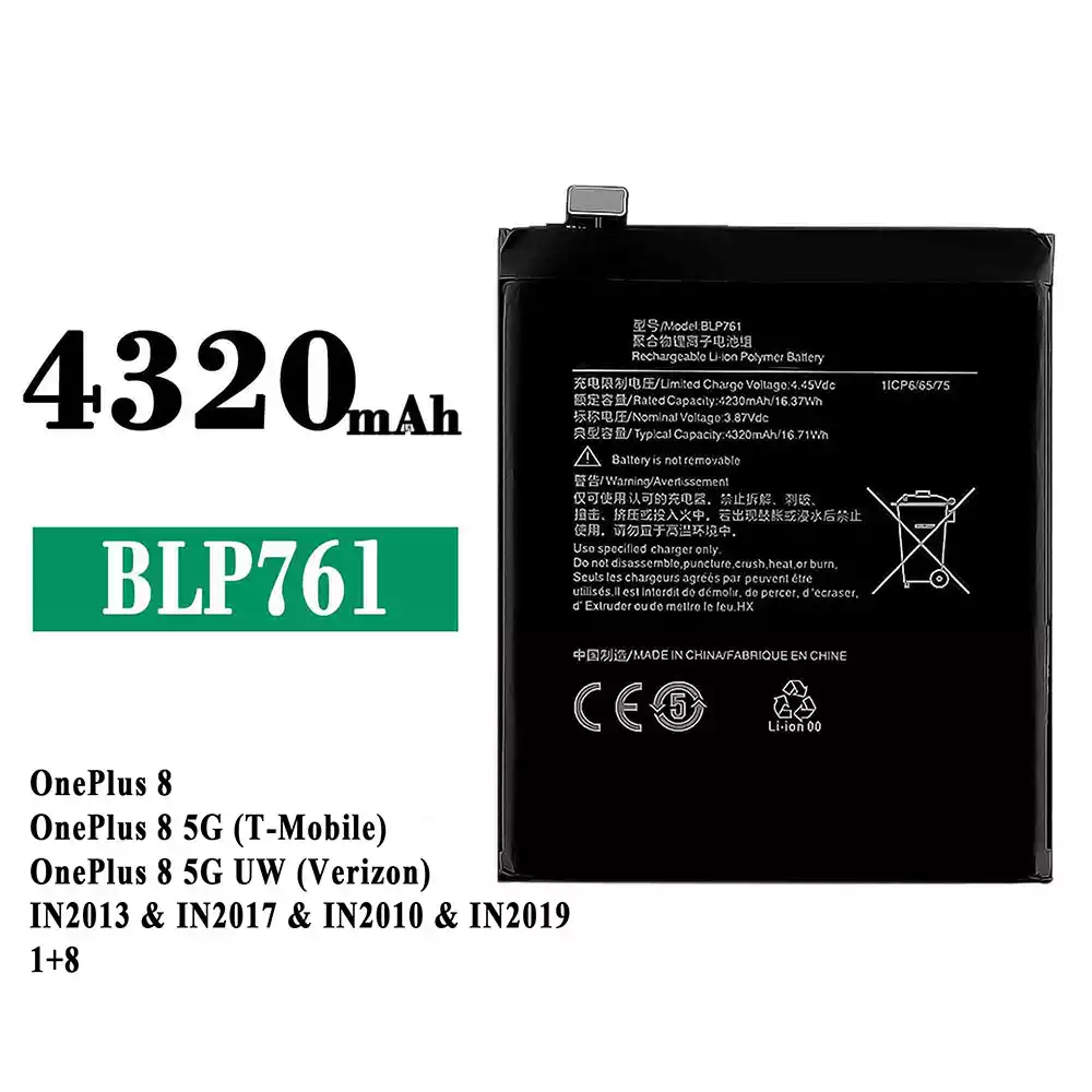 Battery model BLP761 fits for OPPO OnePlus 8 / OnePlus 8 5G (T-Mobile) / OnePlus 8 5G UW (Verizon) / IN2013 / IN2017 / IN2010 / IN2019 1+8