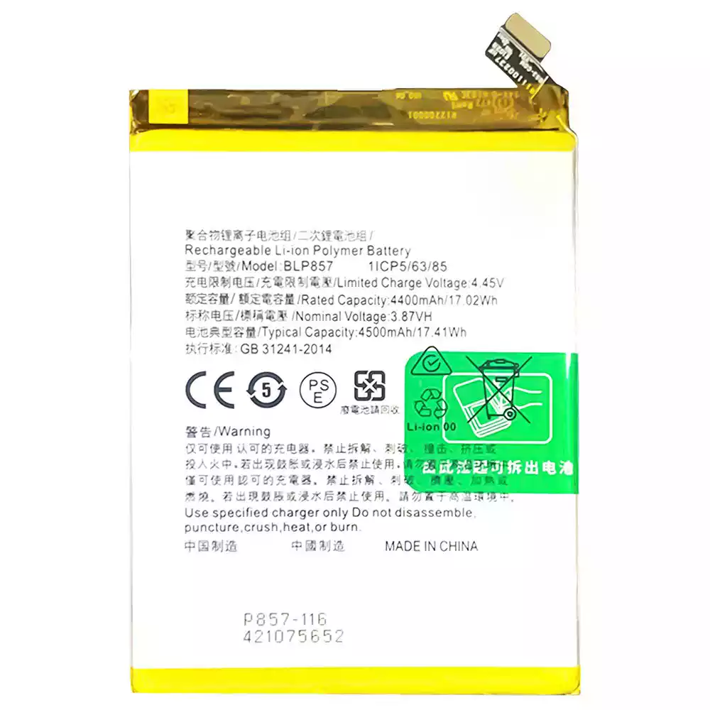 Battery model BLP857 fits for OPPO Realme Q3 Pro / GT NEO / X7 Max /