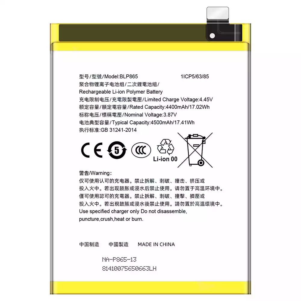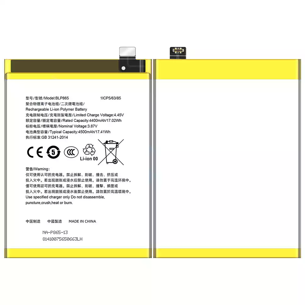 Battery model BLP865 fits for OPPO K9 Pro 5G/PEYM00