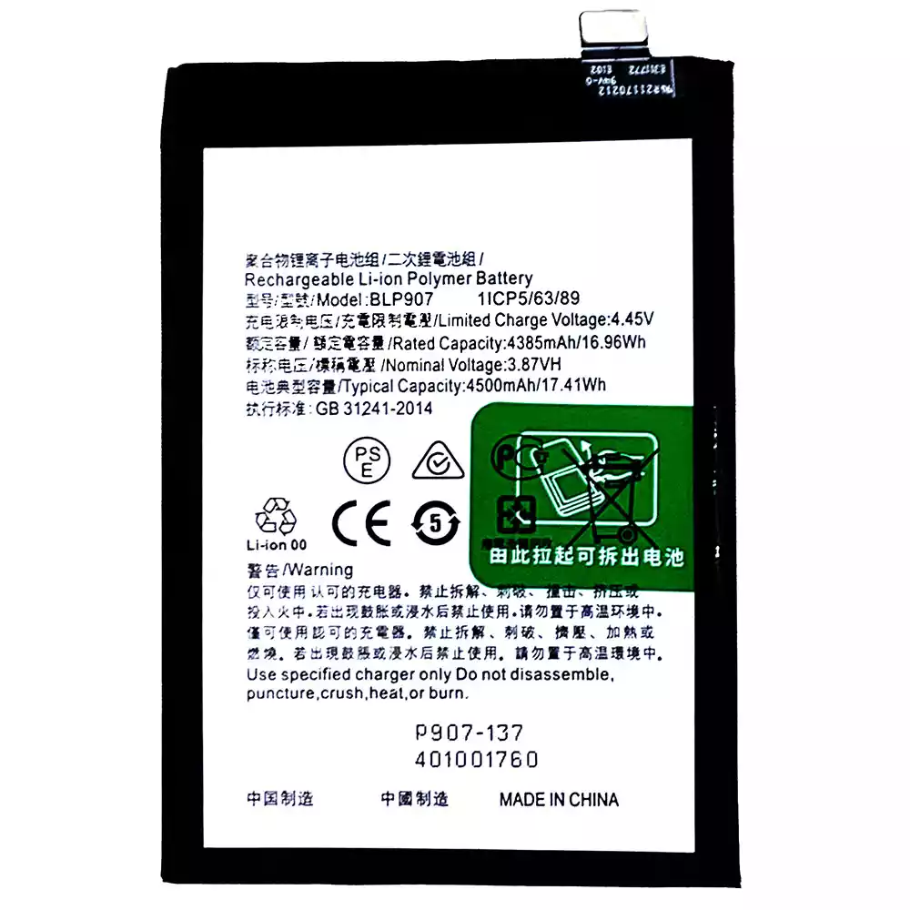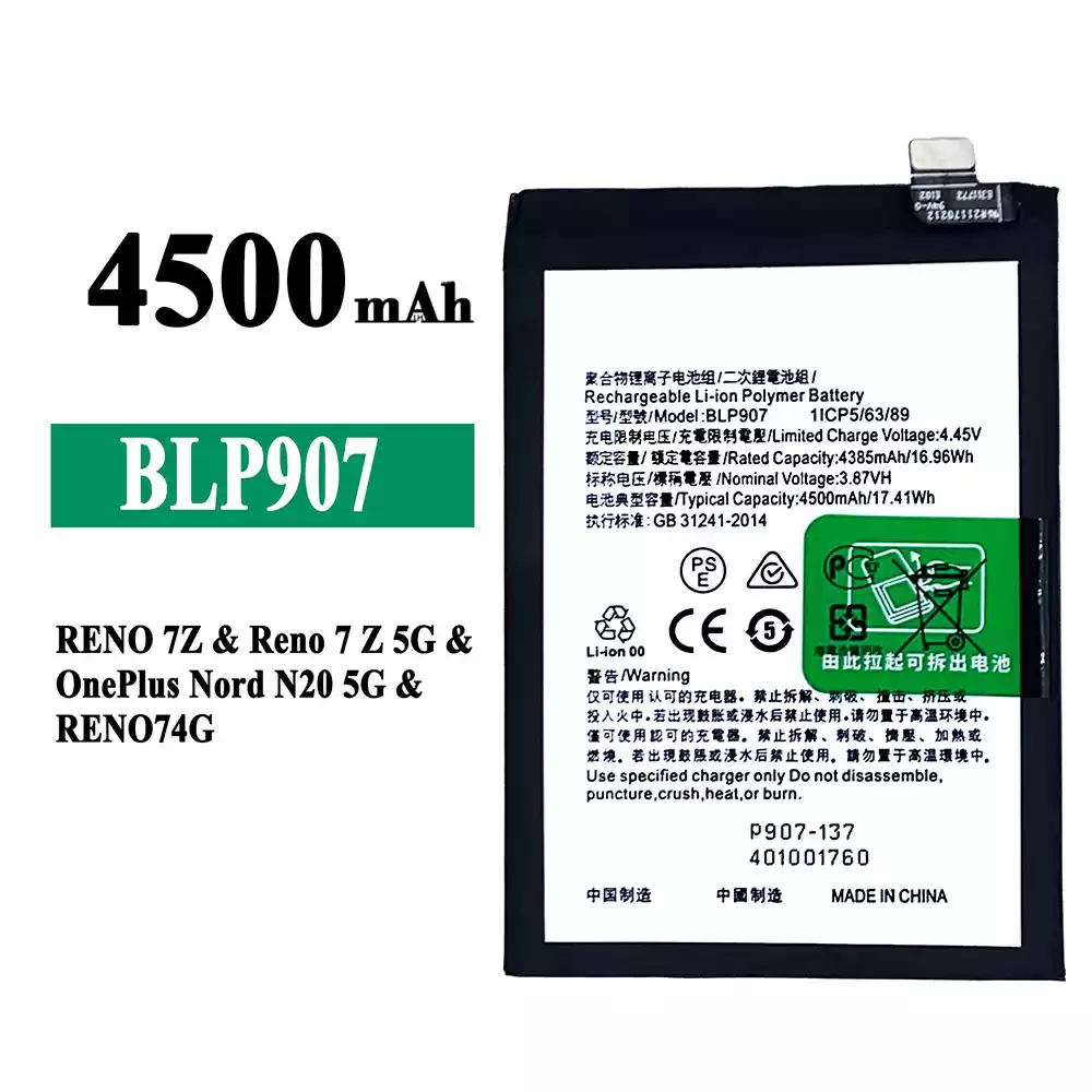 Battery model BLP907 fits for OPPO RENO 7Z / Reno 7Z 5G / OnePlus Nord N20 5G / RENO 74G / RENO 8 4G