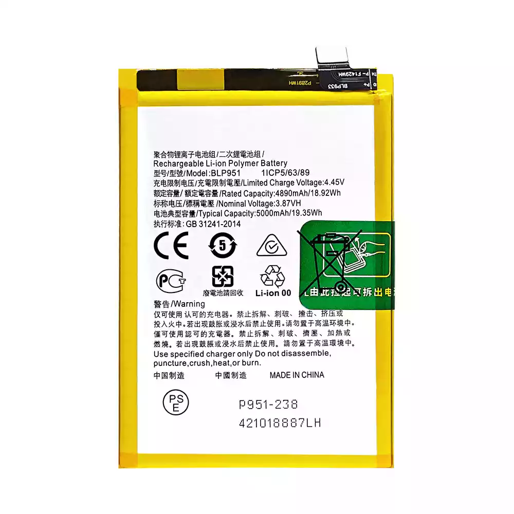 Battery model BLP951 fits for OPPO Realme 10 Pro+ / RMX3687 / RMX3686