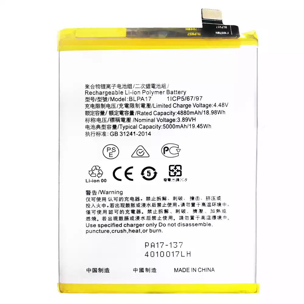 Battery model BLPA17 fits for OPPO Realme C53 / C67 NFC / C65 4G / C67 4G / RMX3760