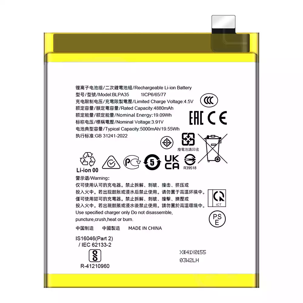 Battery model BLPA35 fits for OPPO Realme 12 Pro Plus 5G / Realme 12 Pro+ / Realme 12 Pro