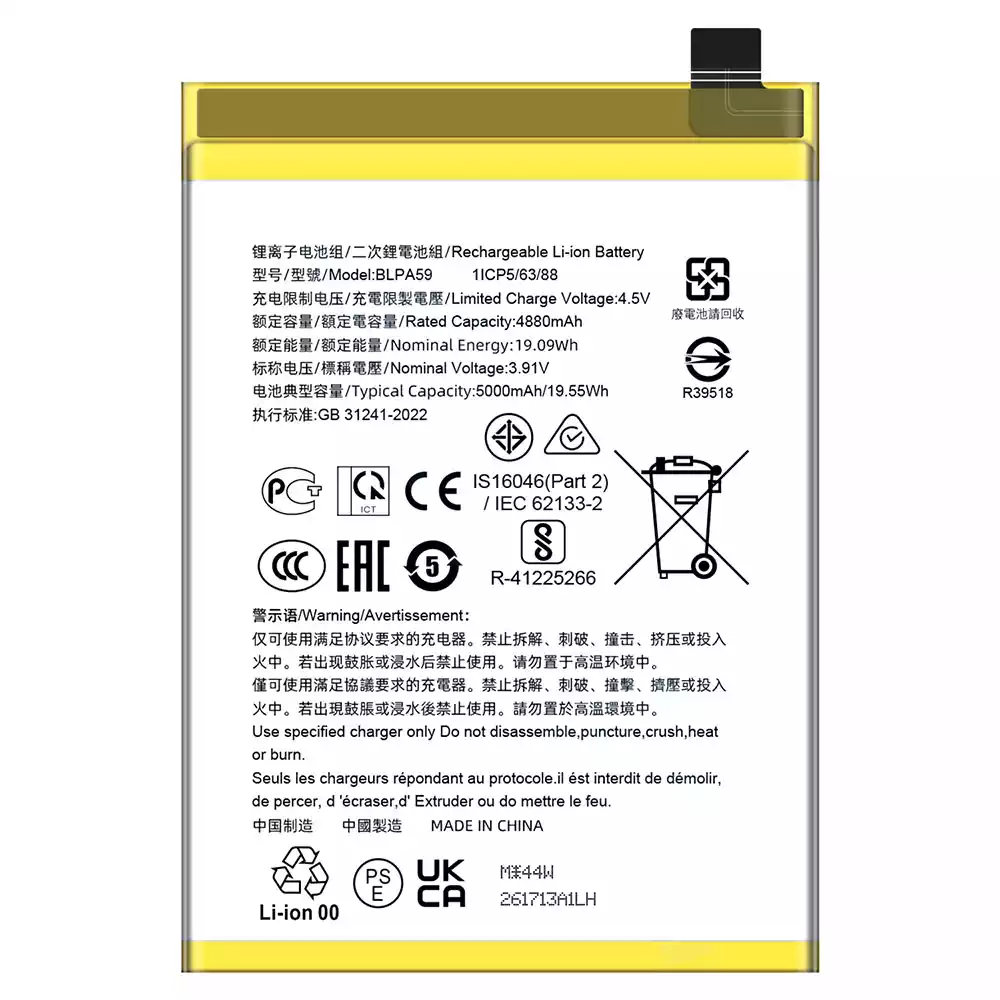 Battery model BLPA59 fits for OPPO Reno12 5G/CPH2625