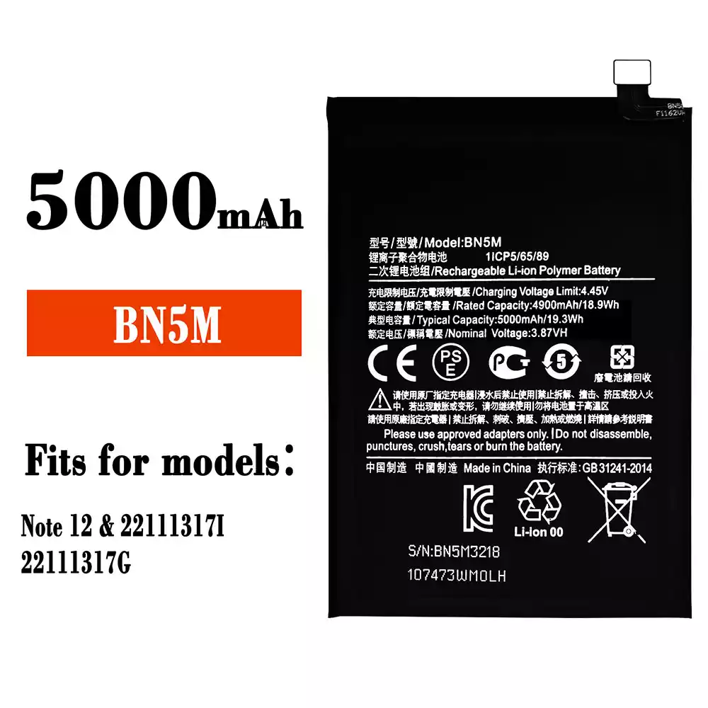 Battery model BN5M fits for Xiaomi Note 12 / 22111317I / 22111317G