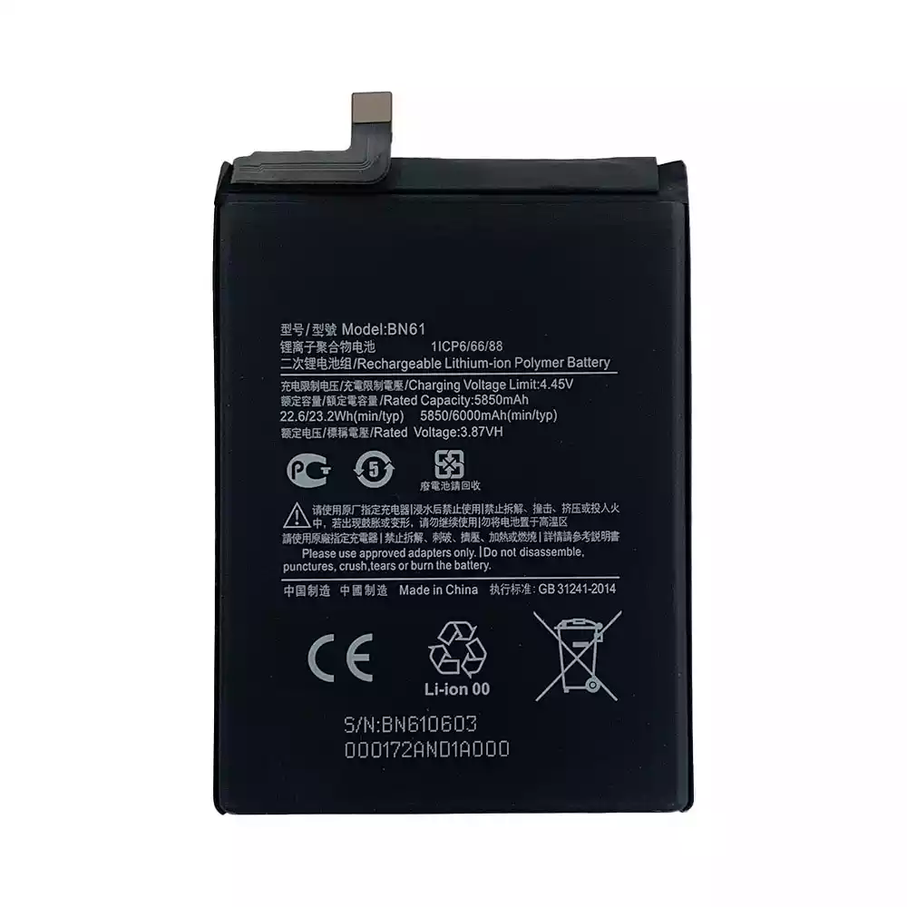 Battery model BN61 fits for Xiaomi POCO X3 / MZBO7ZOIN / MZBO7Z1IN / MZBO7Z2IN / MZBO7Z3IN / MZBO7Z4IN / MZB9965IN / M2007J20CI