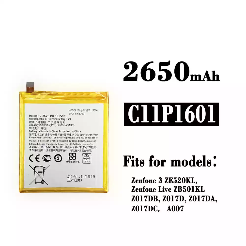 Battery model C11P1601 fits for Asus Zenfone 3 ZE520KL / Zenfone Live ZB501KL / Z017DB / Z017D / Z017DA / Z017DC / A007