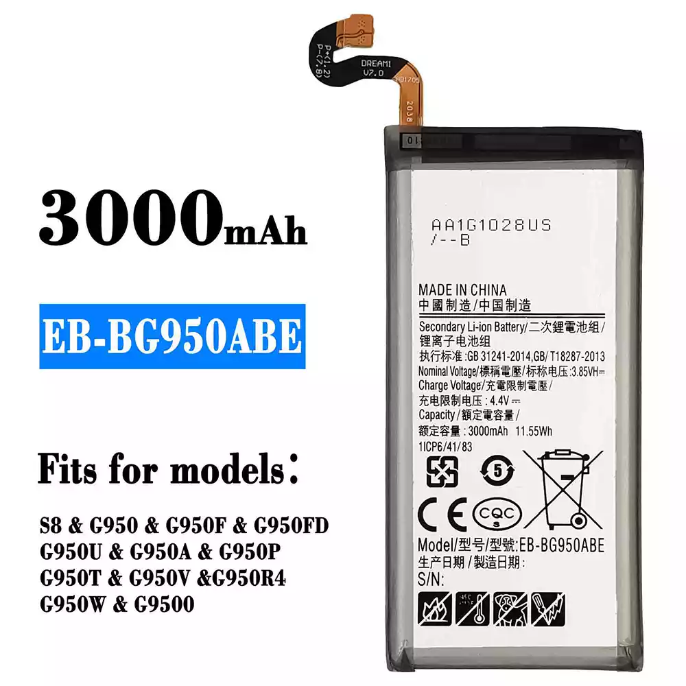 Battery model EB-BG950ABE fits for Samsung S8/G950/G950F/G950FD/G950U/G950A/G950P/G950T/G950V/G950R4/G950W/G9500
