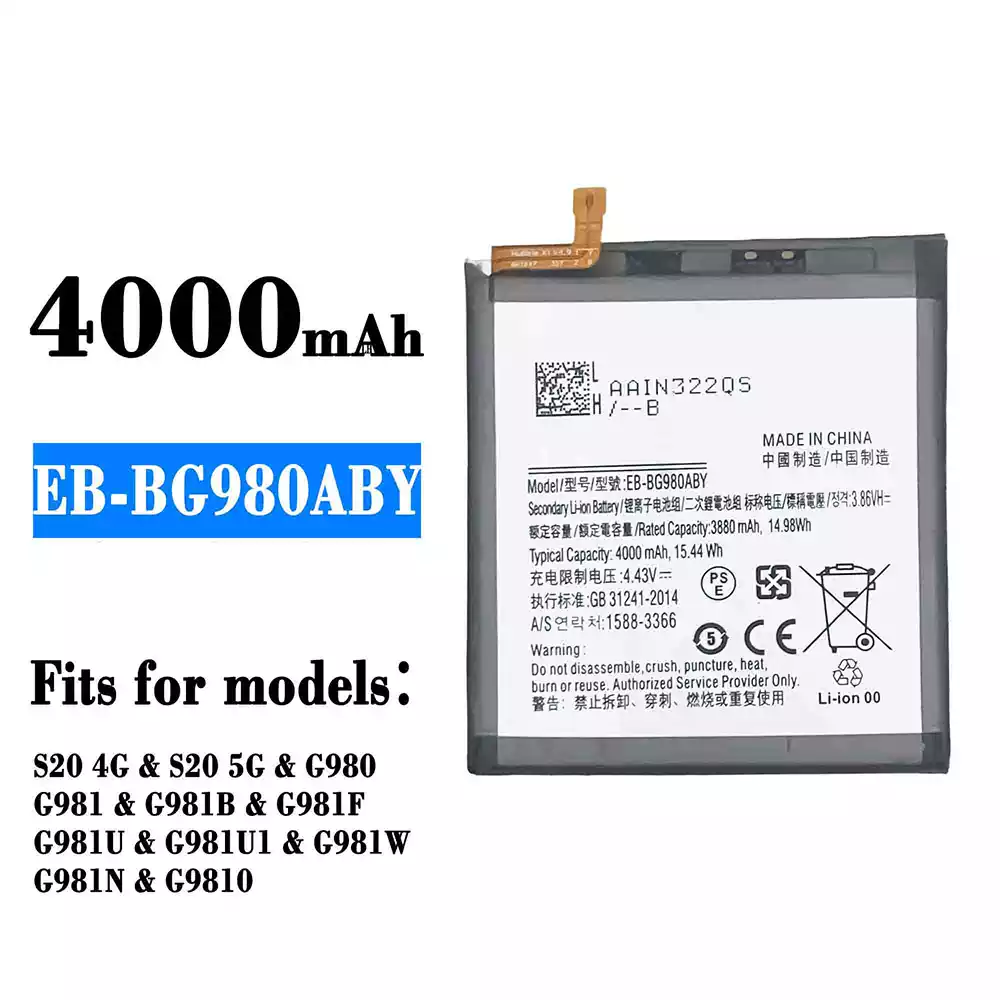 Battery model EB-BG980ABY fits for Samsung S20 4G/S20 5G/G980/G981/G981B/G981F/G981U/G981U1/G981W/G981N/G9810