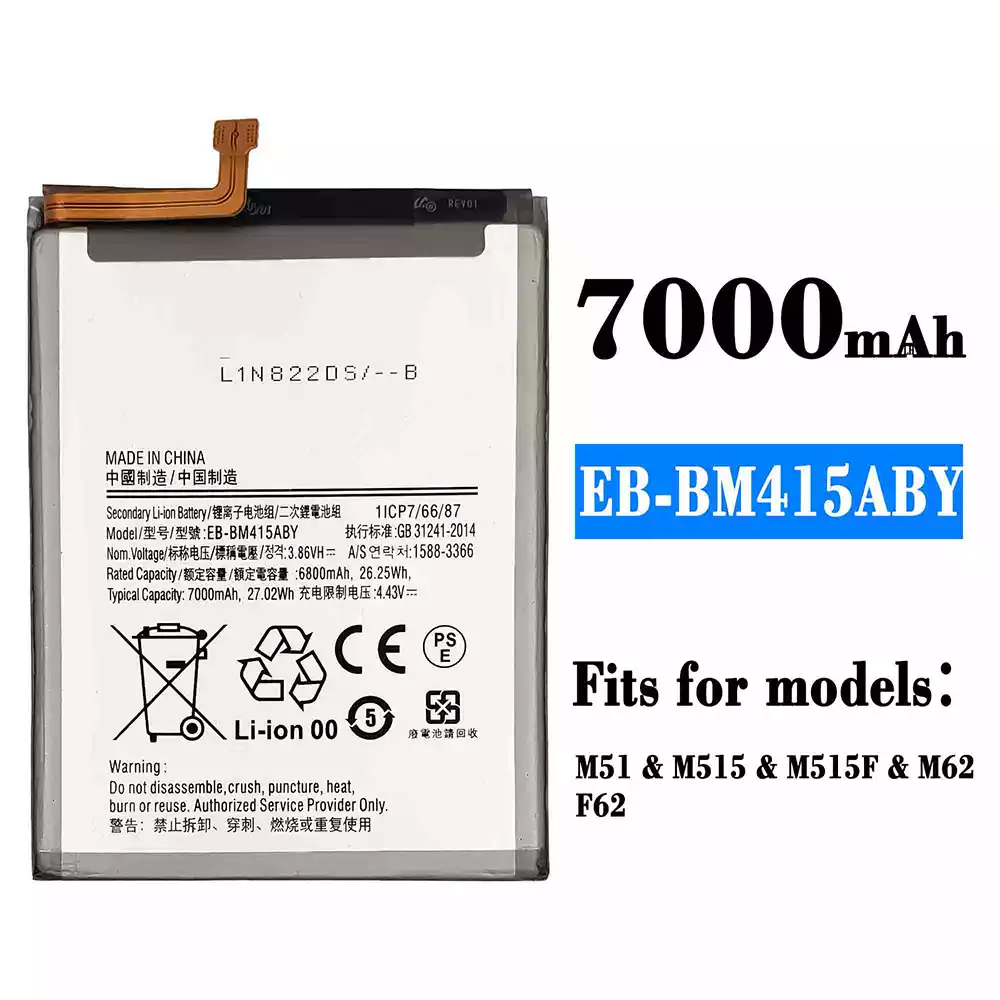 Battery model EB-BM415ABY fits for Samsung M51,M515,M515F,M62,F62