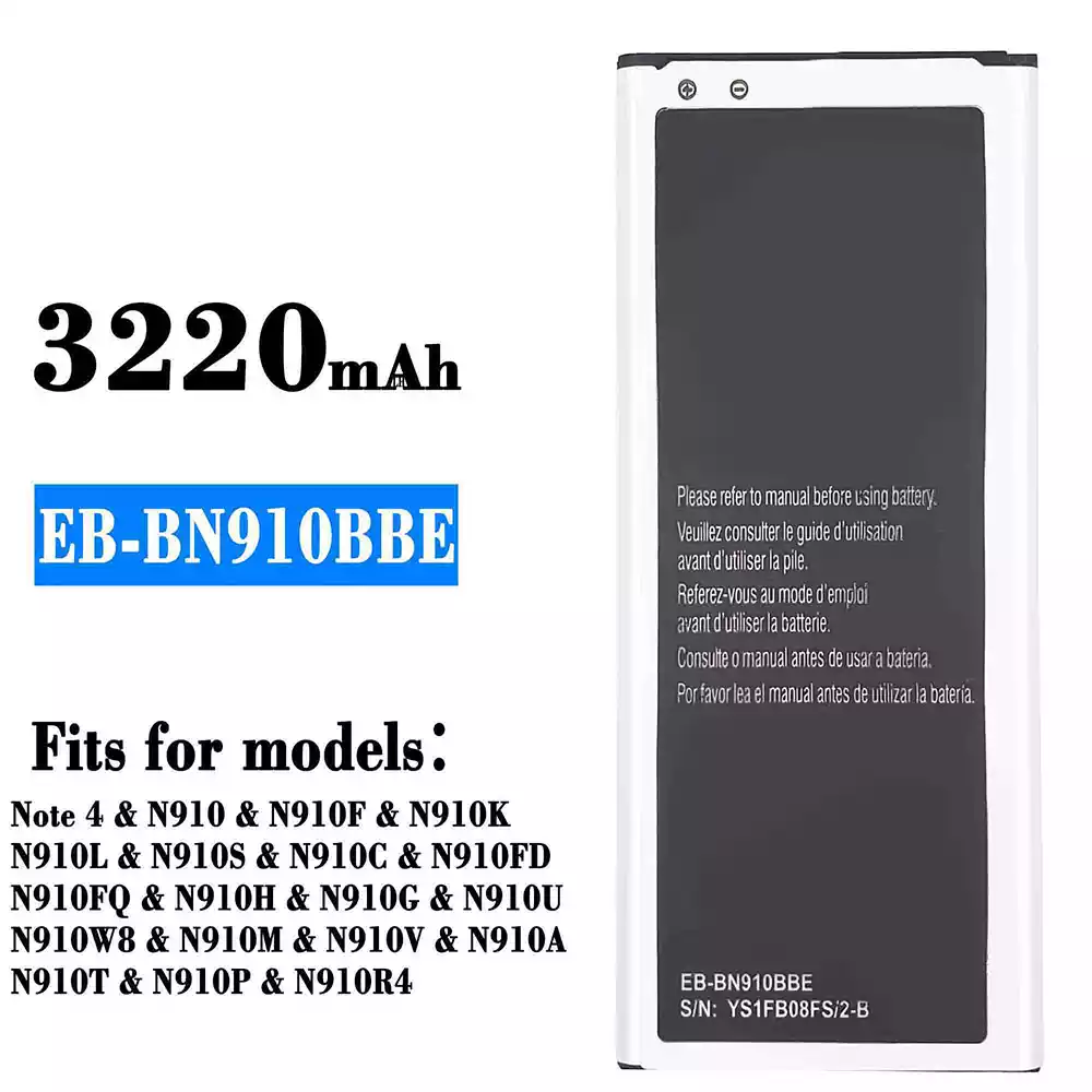 Battery model EB-BN910BBE fits for Samsung Note 4/N910/N910F/N910K/N910L/N910S/N910C/N910FD/N910FQ/N910H/N910G/N910U/N910W8/N910M/N910V/N910A/N910T/N910P/N910R4