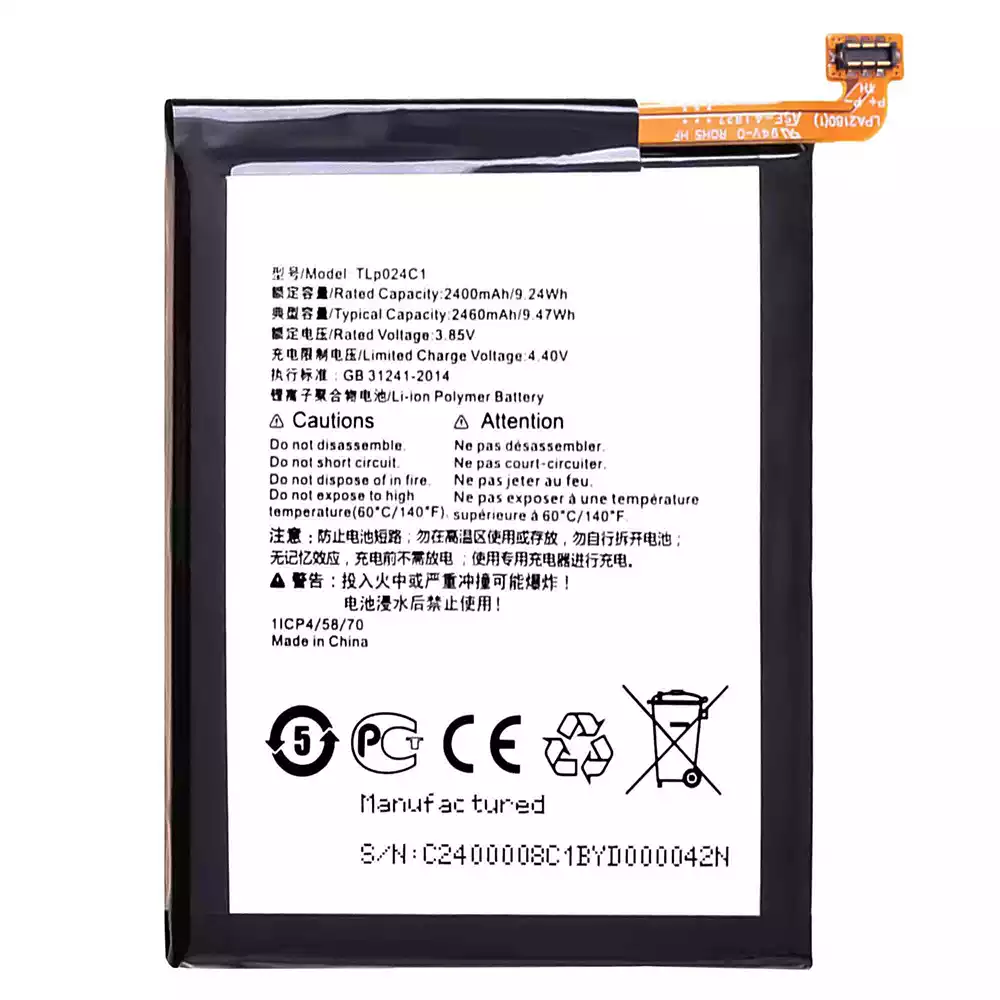 Battery model TLP024C1 fits for Alcatel 1x /5059/5059D/5059I/5059A/5059Y/5059X/5059J/5059T/5059Z