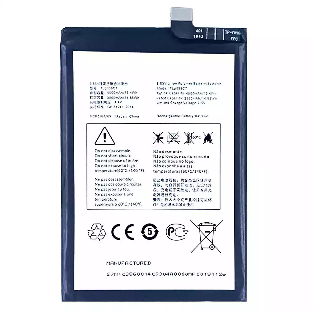 Battery model TLP038C7 fits for Alcatel 3X 2019/5048Y/5048A/5048Y_EEA/5048I/5048U_EEA/5V/5060D/5060A/5060J