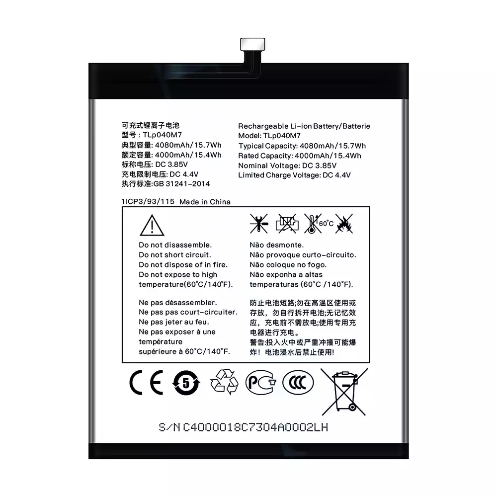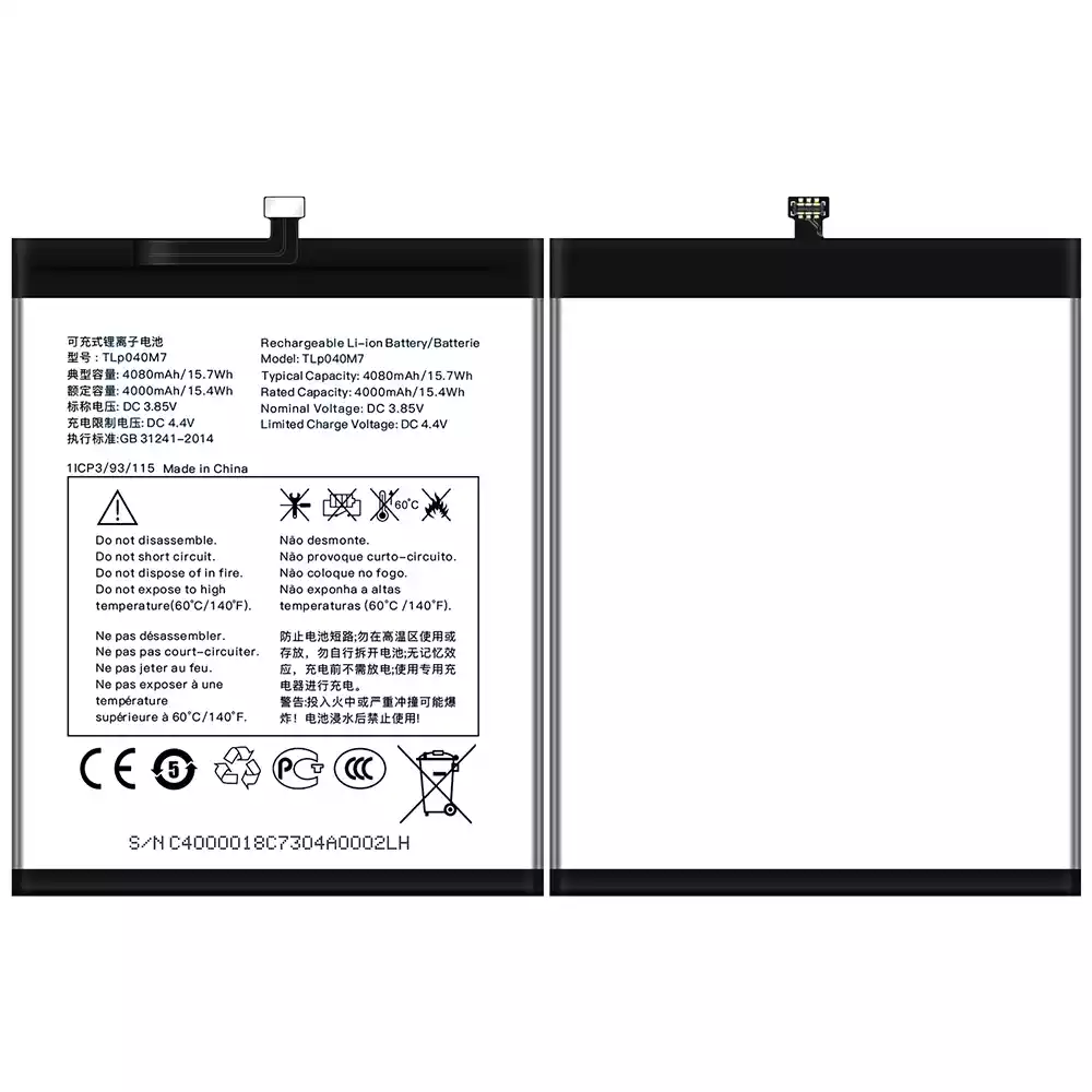 Battery model TLP040M7 fits for Alcatel