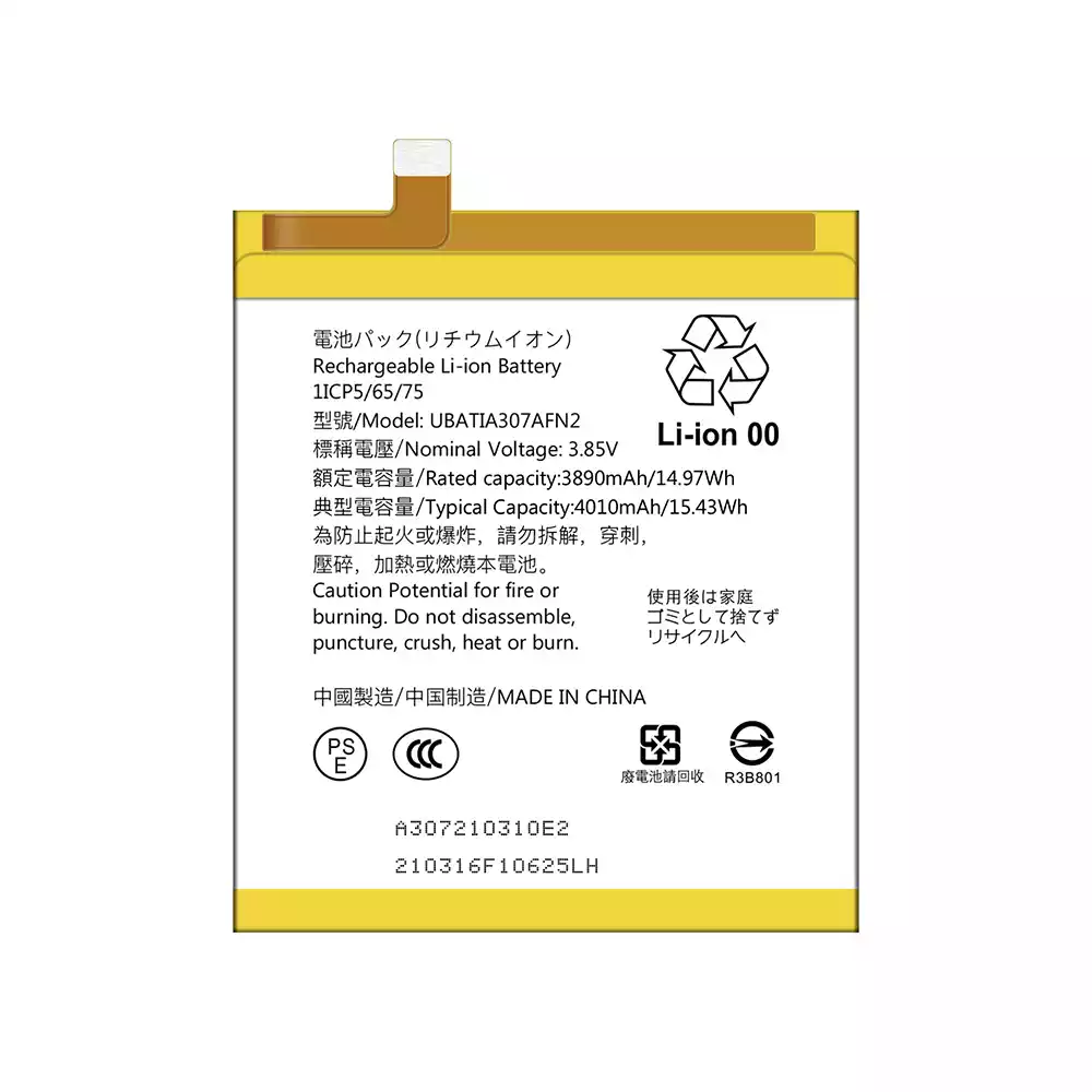 Battery model UBATIA307AFN2 fits for Sharp