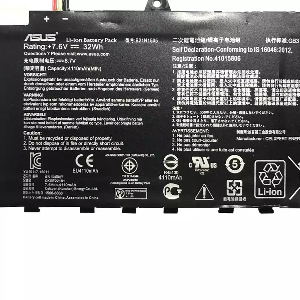 Battery fits for ASUS B21N1505