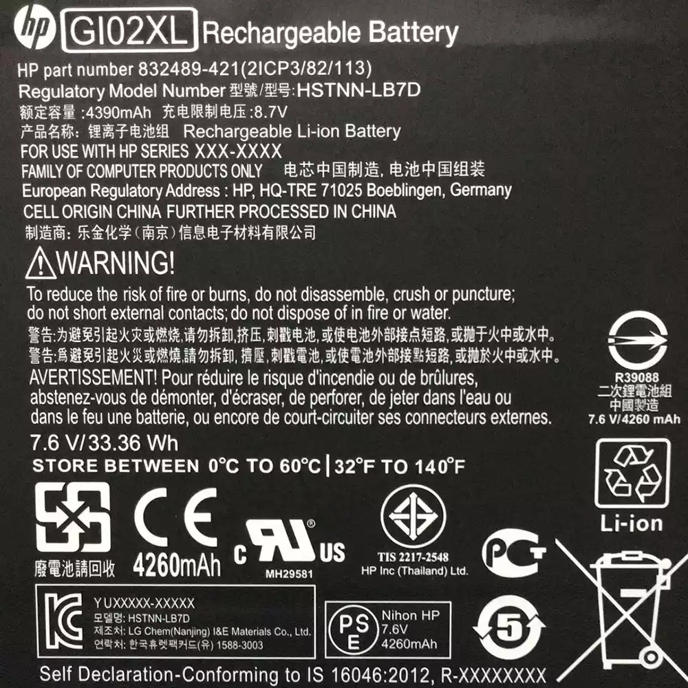 Battery fits for HP 832489-421
