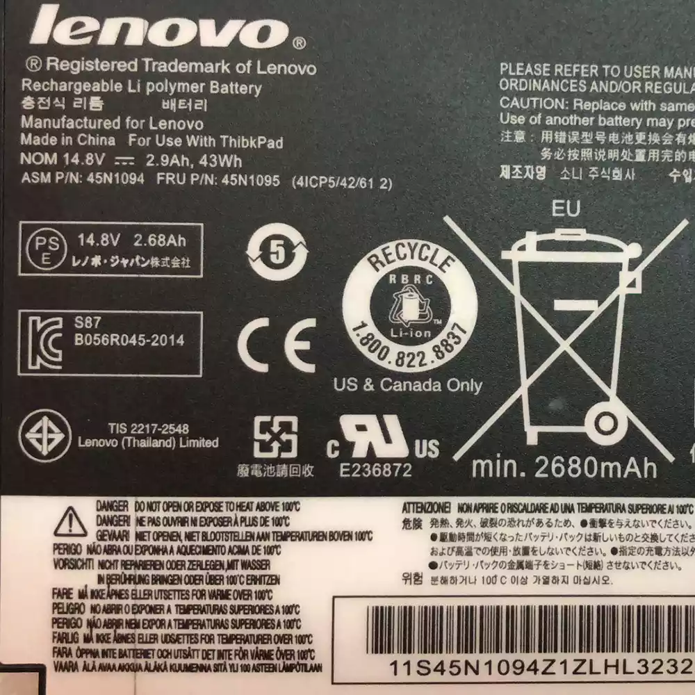 Battery fits for LENOVO 45N1094,45N1095